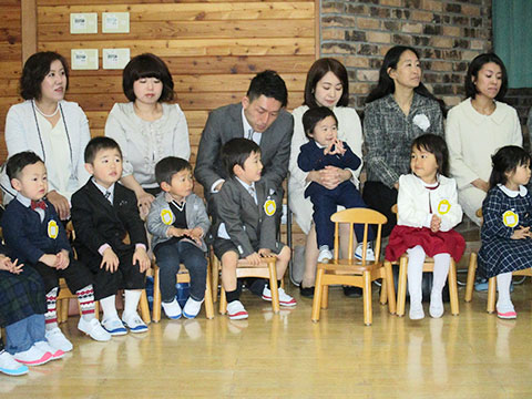 自分の名前を呼ばれて大きな声で返事をしている姿が見られ、さらに新しいお友だちが幼稚園に入ってきたよ、と嬉しいお知らせを聞いて喜ぶ子どもたち。