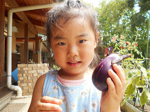 なす収穫(たんぽぽ・年少児) /2020年8月28日(金)