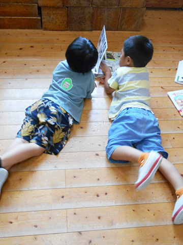 好きなところを見つけてたくさん遊んだ後は、ホールに集まって過ごしました。