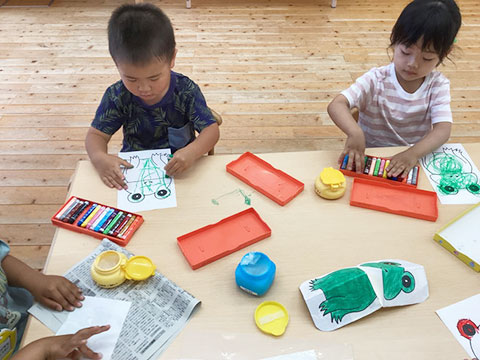 を約束しました。魔法の言葉「リサイクル」も覚えて、お話の後さっそく分別をしている姿が。楽しみながら豊かな学びの時となりました。