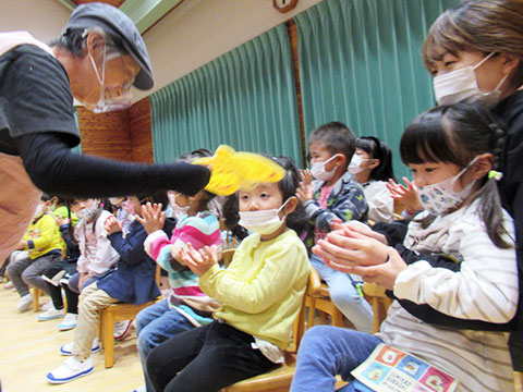 人形劇団『やまんば』の皆さんが、楽しい人形劇を見せてくださいました。