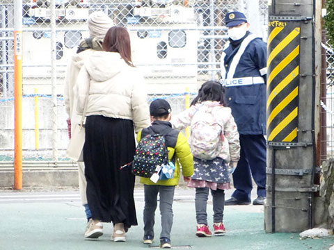 2月の交通安全デーは、東部交番のお巡りさんに指導に来ていただきました。