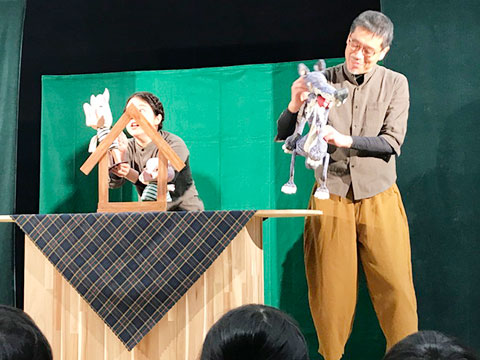 次は、2人で演じる燕組による「さんびきのこぶた」です。