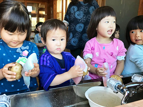 前日には、ふたばさんとたんぽぽさんが、野菜を洗ってくれました。