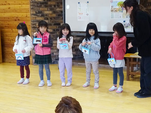 わらべうた遊びや玉入れゲームを楽しんだ後、いちょうさんから素敵なおみやげがありました。