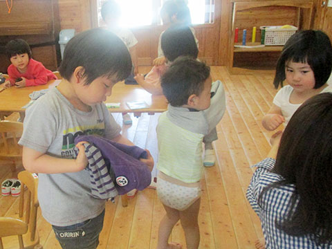 早く遊びたくてたまらない様子の子どもたちです。明日から元気に幼稚園に来てね。